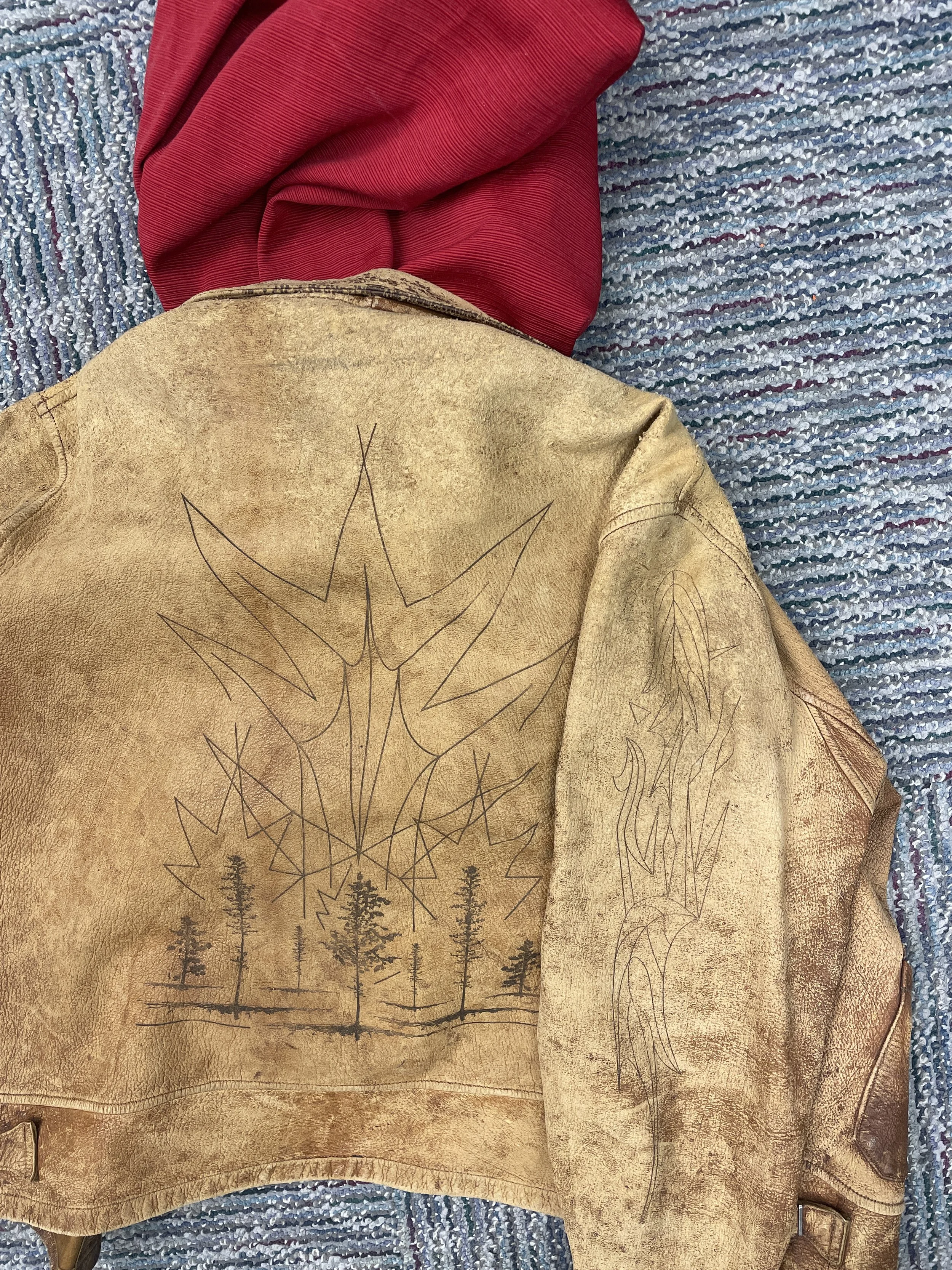 Lasering graphics onto the back and sleeves of a leather jacket to portray wildfire